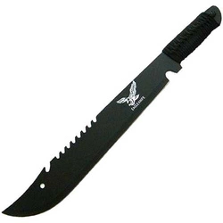 Poręczna maczeta wykonana z jednego płata stali hartowanej nierdzewnej lakierowanej na kolor czarny. W komplecie znajduje się nylonowa pochwa zabezpieczająca ostrze