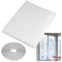 Moskitiera o wymiarach 130x150cm w kolorze białym. Zabezpiecza przed komarami, muchami, osami i innymi owadami. Można używać jej do okrycia np. wózka dziecięcego, wejścia namiotu itp. W komplecie znajduje się taśma z rzepem pozwalająca na montaż w oknie.