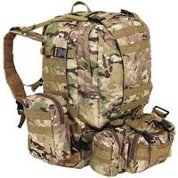 Plecak militarny o budowie modułowej. System pasów nośnych MOLLE pozwala na odłączanie bocznych ładownic i dolnej torby, gdy nie są potrzebne. Torbę można oddzielnie nosić na pasie lub na ramieniu. Wszystko w miejsko-górskim kamuflażu typu multicam.