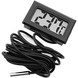 Elektroniczny termometr z sondą umieszczoną na długim kablu. Wskazuje temperaturę w zakresie od -50 do 99 stopni Celsjusza. Znajduje zastosowanie w chłodniach, urządzeniach przemysłowych, w samochodach, terrariach, magazynach, archiwach itp.