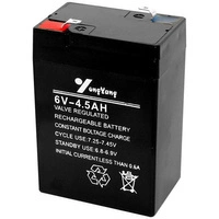 Akumulator żelowy AGM (Absorbent Glass Mat) o napięciu 6V znajdujący zastosowanie m.in w sklepowych i magazynowych wagach elektronicznych oraz w urządzeniach fiskalnych. Pojemność 4.5Ah. Wymiary 100x70x46mm. Żywotność przy pracy buforowej około 5 lat.