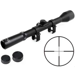 Luneta do wiatrówki o 4-krotnym przybliżeniu. Obiektyw średnicy 28mm z krzyżem snajperskim typu 30/30. W komplecie uchwyt montażowy na szynę wiatrówki szerokości 11mm.