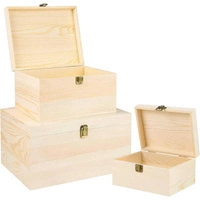 Komplet trzech drewnianych pudełek z metalowymi okuciami. Przeznaczone są do samodzielnego wykończenia. Jest to surowe, jedynie wyszlifowane drewno iglaste. Można je zdobić technikami decoupage, posłużyć jako skrytka na drobiazgi lub opakowanie prezentu