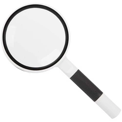 Lupa biurowa ze szklaną soczewką średnicy 75mm osadzoną w oprawie z wytrzymałego ABS. Dla pasjonatów filatelistyki i numizmatyki. Powiększając 4-krotnie pozwala na czytanie drobnego druku w dokumentach, etykietach czy tabliczkach znamionowych.