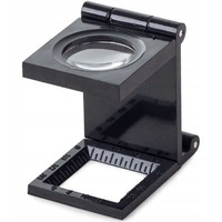 Kieszonkowa lupa dla poligrafów na składanym statywie. Poliwęglanowa soczewka średnicy 20mm zapewnia 6-krotne powiększenie. Skala milimetrowa na podstawie ułatwia precyzyjne prace z drobnymi detalami.