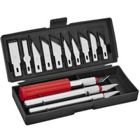 Trzy skalpele modelarskie z kompletem trzynastu wymiennych ostrzy. Sprawdzają się w pracowni modelarskiej, przy zdobieniu przedmiotów technikami decoupage i w wielu innych dziedzinach rękodzieła.