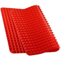 Silikonowa mata do pieczenia o powierzchni w formie setek piramid gwarantującej, że mięso czy ciasteczka nie będą przywierać. Zapewnia cyrkulację gorącego powietrza pod pieczenią. Wytrzymuje temperaturę do 230 stopni, łatwo się myje. Wymiary 40x29cm.