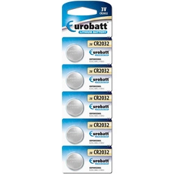 Komplet 5 baterii litowych typu CR2032 o napięciu 3V. Inne oznaczenia DL2032, KCR2032, BR2032, 5004LC, E-CR2032. Stosowane w niewielkich urządzeniach elektronicznych, najczęściej w wagach łazienkowych, pilotach, licznikach i lampkach rowerowych