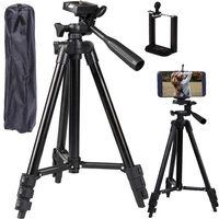 Składany statyw do aparatu, kamery lub smartfona. Wysokość robocza regulowana w zakresie 33-103cm. Standardowy gwint 1/4 cala pod aparat fotograficzny lub kamerę. W komplecie także uchwyt do smartfona pozwalający na montaż urządzeń o szerokości do 75mm.