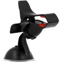 Samochodowy uchwyt do telefonów komórkowych, smartfonów i nawigacji GPS. Mocowany na silną przyssawkę do szyby lub do innych gładkich elementów wnętrza auta. Obracana głowica pozwala ustawić telefon pionowo lub poziomo