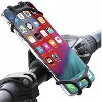 Silikonowy uchwyt rowerowy do smartfona. Pasuje do każdej kierownicy i każdego smartfona o wysokości do 15cm. Elastyczna obejma kierownicy nie wymaga do zamocowania żadnych narzędzi. rozciągliwy silikon tłumi drgania i pewnie obejmuje urządzenie.