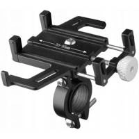 Aluminiowy uchwyt rowerowy na smartfona wykonany z lekkiego a jednocześnie wytrzymałego stopu. Pasuje do urządzeń o szerokości od 55mm do 100mm, także pogrubionych zabezpieczeniem w formie tzw. pancernej obudowy.