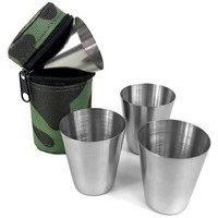 Komplet czterech kieliszków wędkarskich wykonanych ze stali nierdzewnej. Pojemność jednego kieliszka 25ml. Komplet mieści się w futerale w kamuflażu. Niezastąpione po całodziennej wędrówce, podczas wieczoru przy ognisku z przyjaciółmi.