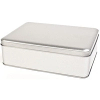 Metalowe pudełko prostokątne do przechowywania różnych drobiazgów lub zapakowania prezentu. Wykonane ze stali lakierowanej na kolor srebrny. Wieczko zamocowane jest na dwóch zawiasach. Wymiary 220 x 163 x 91mm.