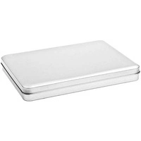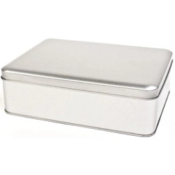 Stalowa puszka prostokątna do przechowywania różnych drobiazgów lub zapakowania upominku. Wykonane ze stali lakierowanej na kolor srebrny. Pokrywa zamocowana jest na dwóch zawiasach. Wymiary 198 x 131 x 70mm.