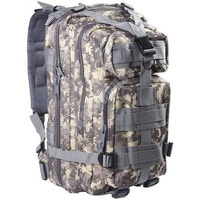 Taktyczny plecak w kamuflażu typu AT-digital na jednodniowe wędrówki lub do noszenia na co dzień. Pozwala spakować niezbędne wyposażenie, np. żywność, napoje, mapę, apteczkę, elektronikę itp. Pasy pozwalają na troczenie dodatkowych akcesoriów.