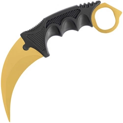 Nóż o charakterystycznej zagiętej głowni typu karambit. Doświadczeni użytkownicy w efektowny sposób potrafią wykonywać nim triki obracając go na palcach. Wykonany ze stali nierdzewnej galwanizowanej na kolor złoty i zaopatrzony w rękojeść z ABS.