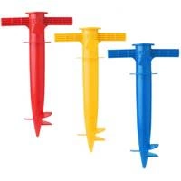 Uchwyt - śruba służąca do skutecznego zakotwiczenia parasola plażowego w piasku. Z powodzeniem może służyć także do mocowania w terenie masztów czy flag. Łatwo wkręca się zarówno w suchy jak i mokry piasek. Pasuje do rurek o średnicy od 2.6 do 3.5cm.