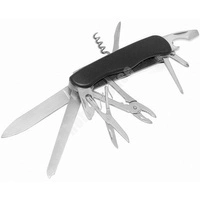 Wielofunkcyjny scyzoryk turystyczny z zestawem praktycznych narzędzi. Posiada składany nóż o ostrzu gładkim, piłę, pilnik, nożyczki, szczypce, korkociąg, otwieracz do kapsli, otwieracz do konserw, śrubokręty krzyżakowe, skrobak i śrubokręt płaski