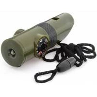 Kompas z latarką, gwizdkiem, lupą, termometrem i lusterkiem. Kieszonkowy zestaw w teren mogący w kryzysowej sytuacji uratować życie poprzez wezwanie pomocy określenie stron świata, nadawanie sygnałów dźwiękowych lub świetlnych