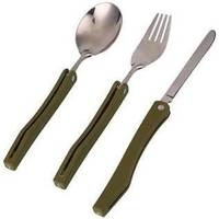 Składane sztućce turystyczne dla podróżników, amatorów biwakowania, pielgrzymów i harcerzy. W komplecie znajduje się nóż, widelec i łyżka. Całość mieści się w wygodnym pokrowcu, który można przypiąć do pasa.
