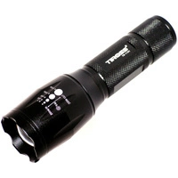 Ręczna latarka skonstruowana w oparciu o jedną wysokosprawną diodę typu CREE XM-L2 T6. Posiada funkcję zoom, stroboskop, SOS i trzy stopnie natężenia światła. Wyposażono ją w akumulator ładowany z sieci 230V, jednocześnie z możliwością używania baterii