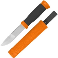 Ceniony model znanego noża Mora Companion we wzmocnionej wersji. Zastosowano w nim stal grubości aż 3.2mm dla uzyskania większej wytrzymałości niezbędnej np. podczas batonowania. Pomarańczowy kolor zapobiega zgubieniu noża w terenie.