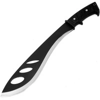 Ciężka maczeta nawiązująca formą do legendarnych nepalskich noży myśliwskich typu kukri. Gruba stal nierdzewna pokryta matową oksydą z wygodną rękojeścią, sprawiają, że narzędzie doskonale nadaje się do karczowania zarośli czy rąbania gałęzi.