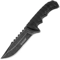 Nowoczesny nóż dedykowany myśliwym i harcerzom. Głownia długości 112mm wykonana została ze stali nierdzewnej oksydowanej na kolor czarny. Również nierdzewną rękojeść zapatrzono w okładziny z antypoślizgowej gumy
