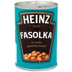 Tradycyjne danie kuchni brytyjskiej. Drobna fasolka gotowana w sosie pomidorowym z delikatnym dodatkiem przypraw. Szybki wysokobiałkowy posiłek. Produkt odpowiedni dla wegetarian, ale można dodać do niego np. kiełbaskę z ogniska.