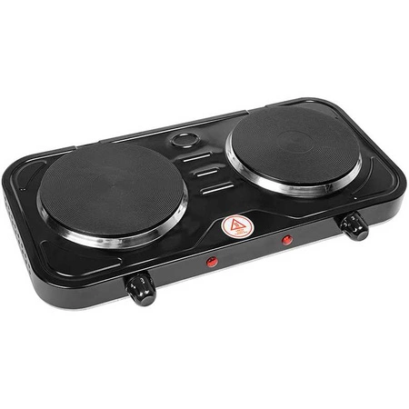 - Elektryczna kuchenka z dwoma palnikami, każdy o mocy 1000W. Pozwala na gotowanie dwóch dań jednocześnie. Niezastąpiona w mieszkaniu, w domku letniskowym, na budowie, kempingu i polu namiotowym z dostępem do sieci elektrycznej.