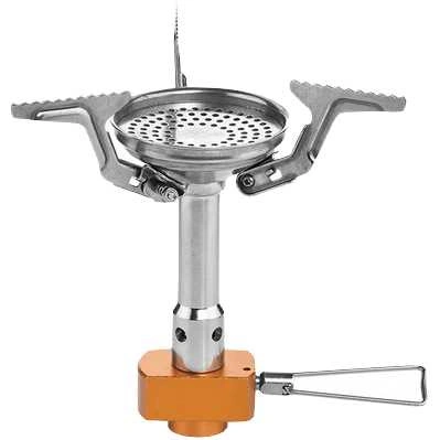 - Miniaturowy palnik gazowy zasilany z kartuszy z gwintem 7/16 cala. Składane ramiona pozwalają zaoszczędzić miejsce w plecaku. Moc 1800W umożliwia pracę w każdych warunkach pogodowych, pozwalając na zagotowanie 1l wody w około 4 minuty.
