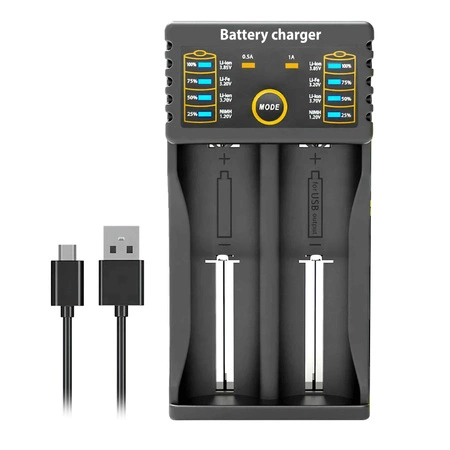- Czterokanałowa ładowarka do akumulatorów Ni-MH typu A, AA, AAA oraz Li-Ion typu 10440, 14500, 14650, 16340, 17335, 17500, 17670, 18350, 18490, 18500, 18650, 22650, 25500, 26650. Wyposażona w zestaw zabezpieczeń oraz funkcję wykrywania wadliwych ogniw.