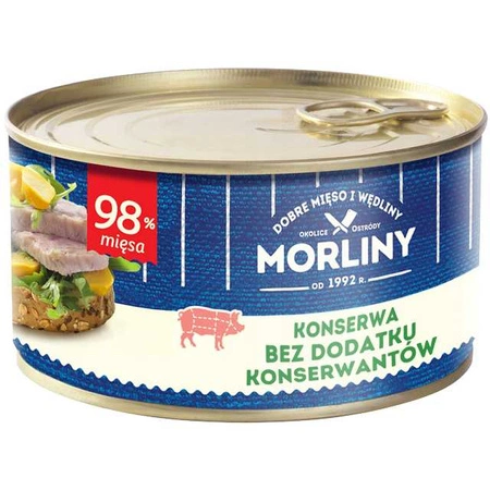 Konserwa bez konserwantów Morliny jest dowodem, że nawet duże firmy powracają do tradycyjnego przetwórstwa mięsnego bez sztucznych dodatków funkcyjnych, znanych jako E... Konserwę wyprodukowano według najprostszej dawnej receptury. Prawidłowo przeprowadzony proces sterylizacji przetworu mięsnego powoduję, że bez dodatku konserwantów, może być przechowywany i zdatny do spożycia nawet przez kilka lat.